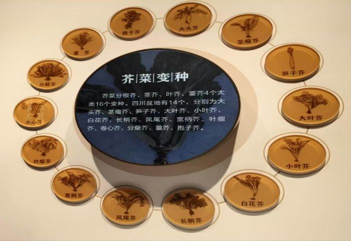 展區同步呈現的芥菜變種歷程圖,清晰梳理了芥菜家族的演化脈絡。據介紹,芥菜分為根芥、莖芥、葉芥、薹芥4個大類共16個變種,其中四川盆地分布有14個變種,包括大頭芥、莖瘤芥、抱子芥等,為榨菜產業發展提供了豐富的原料基礎。