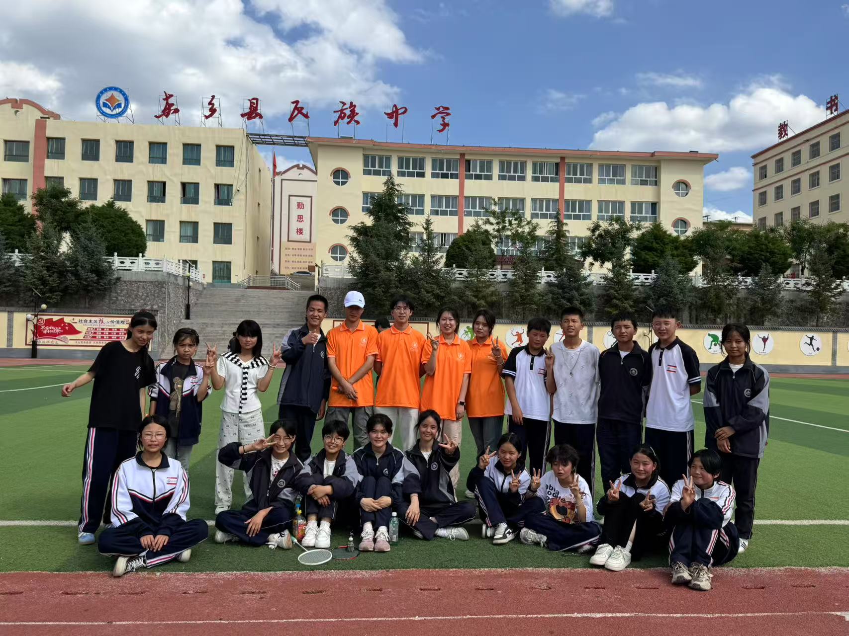 宣講會(huì)結(jié)束后,實(shí)踐隊(duì)還與同學(xué)們開展了一系列體育鍛煉活動(dòng)。羽毛球場(chǎng)上,志愿者與學(xué)生們組成混合戰(zhàn)隊(duì),展開激烈角逐,汗水浸濕了衣衫,卻擋不住大家的熱情;跳繩比賽中,孩子們輕盈的身影在繩子間穿梭,歡呼聲、加油聲此起彼伏。“平時(shí)學(xué)習(xí)壓力大,很少有機(jī)會(huì)這么痛快地玩一場(chǎng),和大哥哥大姐姐們一起運(yùn)動(dòng),感覺特別開心。”八年級(jí)學(xué)生馬明山說。體育活動(dòng)的開展,不僅增強(qiáng)了孩子們的體質(zhì),更在汗水中澆灌出團(tuán)結(jié)與自信的種子。
