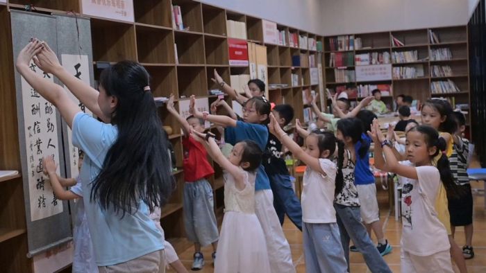 圖為實踐隊成員對孩子們進行舞蹈教學(xué) 卜鑫雨攝