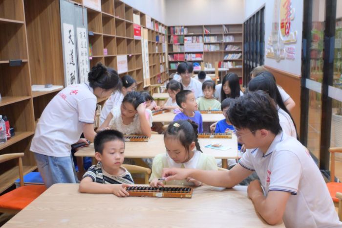 圖為實踐隊成員對孩子們進行珠算教學(xué) 張佳媛攝