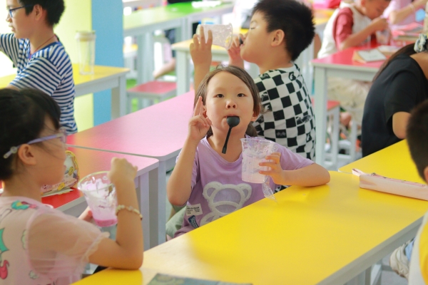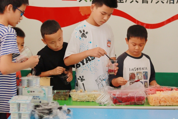活動(dòng)籌備階段,實(shí)踐團(tuán)成員采購(gòu)了杯子、勺子、各類水果和酸奶,分門別類擺放在桌上,為活動(dòng)做好充分準(zhǔn)備。活動(dòng)現(xiàn)場(chǎng),夏令營(yíng)學(xué)生們有序排隊(duì),依據(jù)個(gè)人喜好挑選水果。實(shí)踐團(tuán)成員為學(xué)生分發(fā)勺子、倒入酸奶。大家自行分組,分工協(xié)作,有的搭配水果,有的調(diào)配酸奶與水果的比例,一起制作獨(dú)屬于自己的水果杯。活動(dòng)接近尾聲,同學(xué)們圍坐在一起,品嘗自己親手制作的美食。他們一邊品嘗著各自的水果杯,一邊分享著活動(dòng)中的心得體會(huì)。
