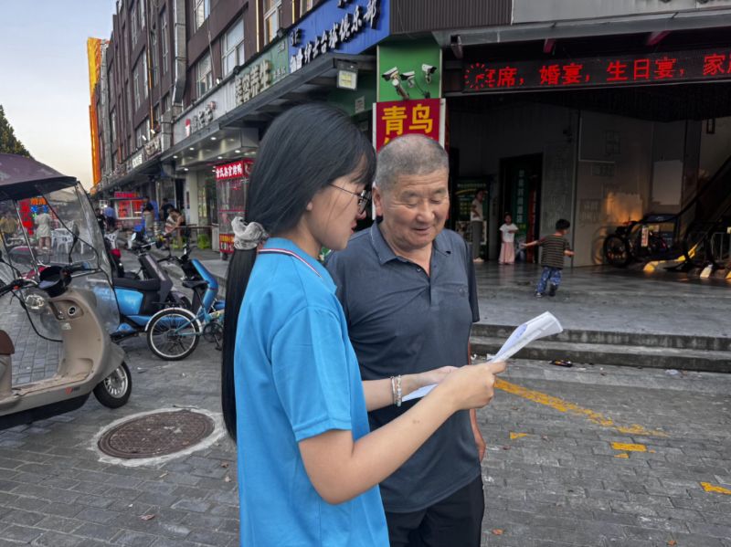 圖為調(diào)研團(tuán)赴湯卞社區(qū)宣傳智匯農(nóng)業(yè)知識陳一諾攝