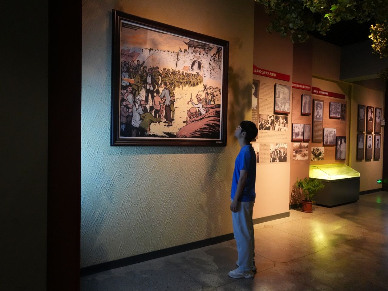 圖為團隊成員駐足觀看革命事跡漫畫 凌文韜 供圖
