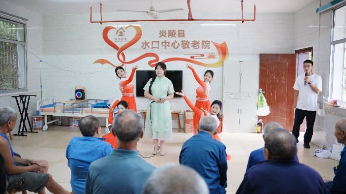 炎陵水口鎮(zhèn)敬老院里,青春與銀發(fā)共舞。文創(chuàng)組教老人用扭扭棒編出“向陽花”“如意結(jié)”,齊耳短發(fā)奶奶高舉作品:“這朵花,我要別在胸口!”“藝青年”李響唱起《我的祖國》,曾為軍人的爺爺指尖微顫,淚光中映著烽火歲月。《燈火里的中國》旋律悠揚,老人合掌輕和。民族舞熱情奔放,中國舞衣袂翩躚,爺爺奶奶們隨節(jié)拍拍手,掌聲與笑聲撞了滿懷。文旅組架起“天安門”背景布,為老人拍攝“圓夢照”,并將活動過程制成紀念視頻《青春暖夕陽》。