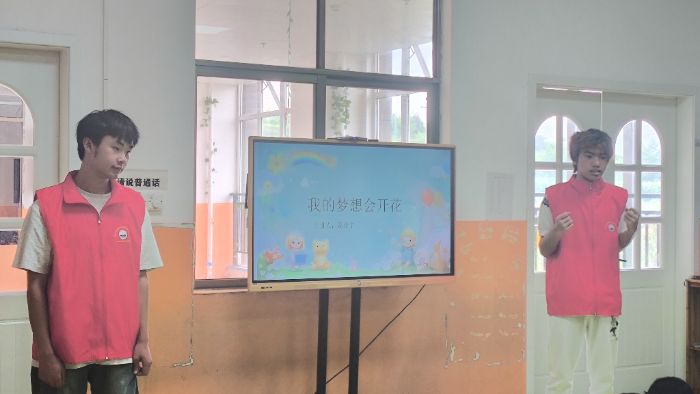 為助力鄉村兒童樹立遠大理想,志愿者們同步開展"我的夢想會開花"主題實踐活動。通過"我的夢想會開花"等環節,引導孩子們結合自身認知描繪未來職業藍圖。活動中,孩子們充分發揮想象力,并踴躍分享自己的職業理想。