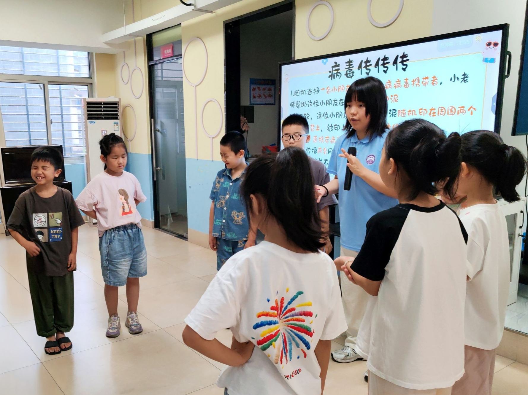 在池店鎮狀元里社區“黨建+”鄰里中心和永福里社區新時代文明實踐站內,通過“Yes or No”情景游戲和“口香糖粘粘樂”,幫助小朋友們建立身體界限意識。防艾宣講則結合動畫視頻和互動問答,科普傳播途徑與防護措施。實踐隊將性健康教育與法律知識相融合,讓小朋友們在輕松氛圍中學會用法律武器保護自己,樹立“我的身體我做主”的堅定信念。