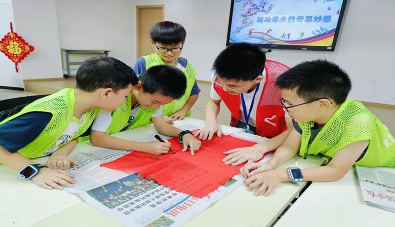 7月11日,科苑社區開展了以“運動帶來的奇思妙想”為主題的課程實踐,志愿者們時刻關注著小朋友們的安全狀況,指導動作,鼓勵他們直面挑戰,傳遞團結協作的意義;在“文物里的荊楚文明”歷史課程中,小朋友們需要制作傳統手工藝品——老虎帽,志愿者提醒小朋友們在制作過程中要注意的安全事項并協助完成手工,當一頂頂老虎帽制作完成時,小朋友們的臉上洋溢著自豪與歡樂的笑容,展現著靚麗的青春底色。