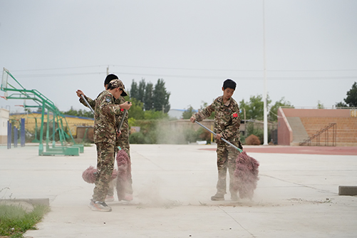 活動中,身著迷彩服的同學們積極參與,教學樓周邊,同學們分工合作,清理花壇里的雜草、雜物。大家不怕臟、不怕累,用雙手拔除一株株雜草,讓花壇恢復了整潔美觀。在清理走廊和教室時,同學們認真擦拭門窗、欄桿,用拖把將地面拖得一塵不染,使原本就明亮的教室變得更加窗明幾凈。