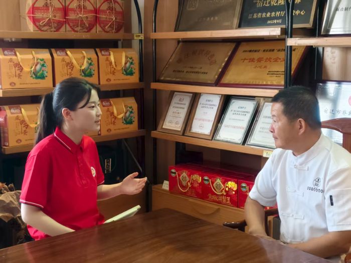 新一鍋貢酥又出爐了,另外還有新產品“皂河小脆子”推出。成員們就當下爆火的“蘇超”比賽,也向劉老師展示了衍生的周邊產品。劉老師表示,他從隊員們的分享中汲取了新的靈感,將來也會與不同的活動、賽事進行聯動,在宿遷市各級政府的大力支持下,進一步給傳統非遺制作技藝注入新時代的活力。