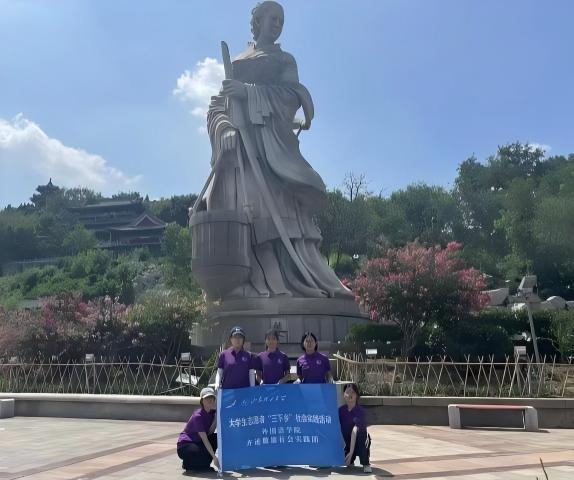 緊接著實踐團成員們來到了孝園,到此感受濃重的孝道文化。孝園依托顏文姜祠的歷史底蘊而建。園內,雕塑與壁畫生動還原了顏文姜汲水侍親的場景,陽光灑在這些現代藝術作品上,與古祠的滄桑形成奇妙呼應,讓千年前的孝道故事有了更貼近當下的表達。調研過程中,工作人員表示,孝園以直觀可感的方式,讓古老的孝道故事走出傳說、貼近生活。這份浸潤心靈的觸動,將轉化為踐行孝親敬老的實際行動,讓傳統美德在當下煥發新的光彩。