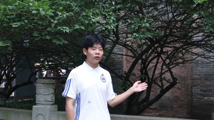 圖為初心隊(duì)導(dǎo)游為成員講解簡(jiǎn)陽(yáng)人民公園歷史文化成都東軟學(xué)院丁思琪攝