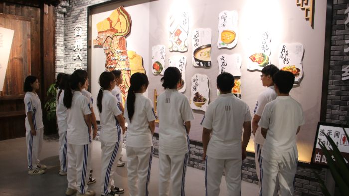 圖為講解員講解簡(jiǎn)陽(yáng)歷史美食成都東軟學(xué)院張新碩攝