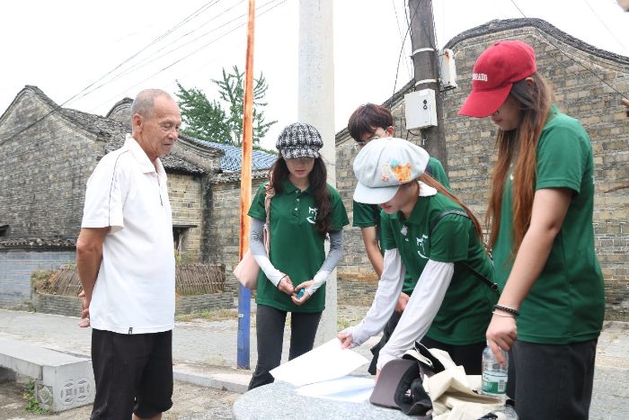 圖為實踐團成員對李支書進行問卷調查。林曉峰供圖