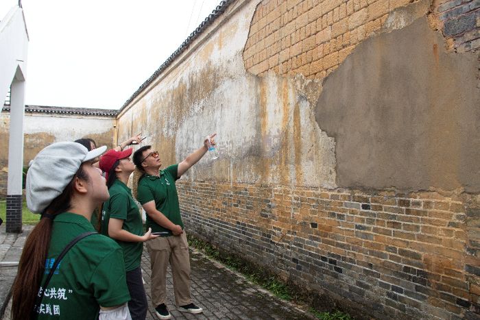 圖為實踐團成員研究崇山古民居墻體。林曉峰供圖
