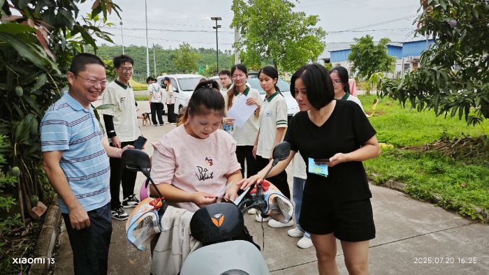 進社區:解碼安置點的“宜居宜業基因” 新光社區隸屬靈山縣陸屋鎮蓮塘村委,是自治區“十三五”易地扶貧搬遷安置點。在蓮塘村駐村第一書記張書記的帶領下,實踐團首先深入了解了社區的基本情況:該社區共安置搬遷群眾104戶,目前常住97戶,群眾生活穩定;因緊鄰六欽高速出入口和242國道,交通區位優勢顯著;且距欽州臨港產業園僅1公里,為搬遷群眾就近就業、創業提供了天然便利。