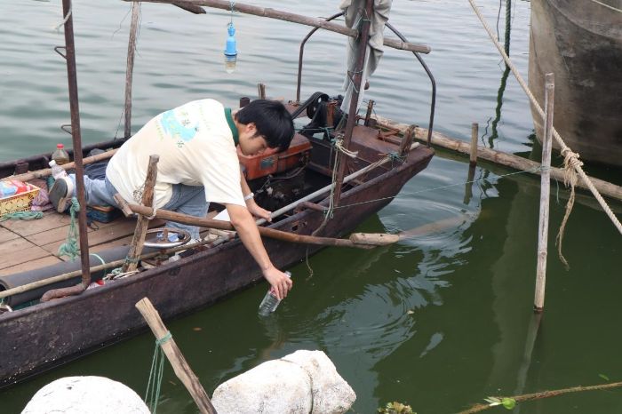 測水質:運河生態“體檢” 在平塘江口,團隊組建水質取樣隊,隊員手持采樣器,于河道淺灘、深水區等點位采集水樣。團隊負責人陳逸飛介紹,水樣將送檢檢測酸堿度、溶解氧、重金屬及有機物含量,借水質數據分析,摸清江口水質本底,為評估工程對周邊水環境的影響、制定施工期水質保護方案提供依據。采樣結束后,團隊向村民發放水質保護宣傳資料,普及生活污水規范排放等知識。