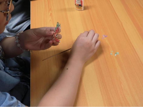 圖為孩子們親手制作螺鈿飾品的場景。王晶 攝