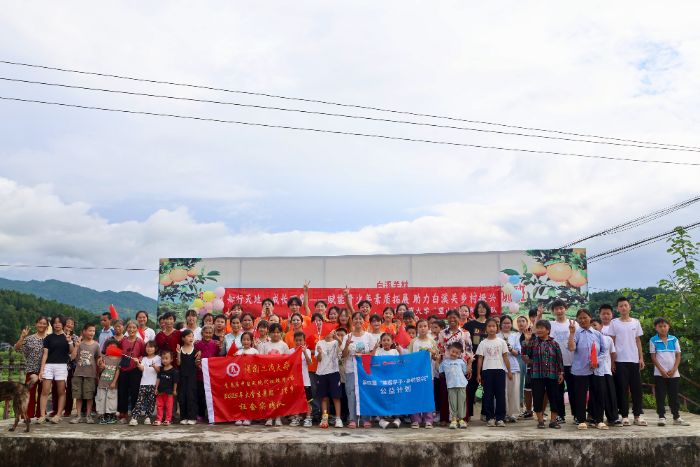 “長亭外,古道邊,芳草碧連天”,隊員們與所有青少年在表演臺上牽手同唱,文化節在《送別》的旋律中落幕。最后的班會上,服務隊為孩子們分發大禮包,“老師,我以后來長沙找你”“這是送給你的禮物”等話語與淚水交織,大家相擁合影,約定共赴美好明天。這場告別背后,是服務隊留下的一串串實踐印記:教當地青少年使用AI修復的紅色老照片并將照片贈送他們;共同繪制的“籬笆公約”被貼在村活動中心墻上,成為村民共同遵守的行為規范;彩繪石頭、生態瓶、紙橋等等,這些印記終將成為鄉村生長的養分,助力白溪關村在振興之路上綻放更耀眼的光芒。