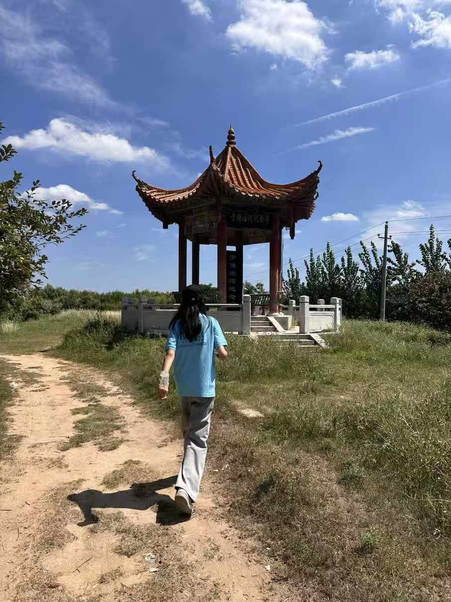 鄉村是黃河治理的重要陣地,實踐團專程前往開封市柳園口鄉和尚莊村,開啟沉浸式調研。在 焦萬嶺、郭桂花等村民指引下,團隊探訪了具有特殊意義的黃河42號壩 ——1952年毛澤東主席在此視察黃河 “懸河” 狀況,并留下 “一定要把黃河治理好” 的重要囑托,如今這里已成為當地紅色教育基地,團隊成員駐足紀念碑前,深刻感悟黨和國家對黃河治理的重視。此外,實踐團還考察了林則徐主持修復的 “林公堤”,從這段承載百年治黃史的大堤中,體會 “茍利國家生死以,豈因禍福避趨之” 的治水精神。