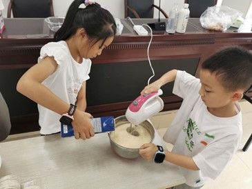 蛋撻制作課上,孩子們瞬間化身“小小烘焙師”。在志愿者的指導下,他們小心翼翼地稱量奶油、攪拌蛋液,看著蛋撻液慢慢填滿撻皮,再親手送入烤箱。當帶著奶香的蛋撻出爐時,孩子們捧著自己的“作品”,你嘗一口我的,我分一塊你的,臉上滿是成就感與幸福感,勞動的快樂在空氣中蔓延。