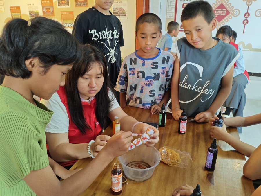 志愿服務團負責人表示:“把扎染非遺帶入紅領巾小課堂,不僅是讓孩子們體驗手工樂趣,更希望他們能在動手過程中,感受傳統工藝的智慧與美感,在心里種下傳承文化的小種子。”