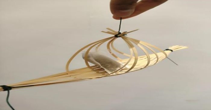 竹編技藝源遠流長,從新石器時代至今,幾乎貫穿了整個中華的文明史。竹編技法多樣,有挑一壓一,挑二壓二、六角編、三角編、絞絲,菊花底、插筋、雪花編、和尚頭等多種編法,講究的是經緯交錯的默契,暗藏著先民與自然對話的智慧。隊員們手持細竹條,耐心編織,細密的篾絲在指尖穿梭,不多時,一只線條流暢的小簍子與一艘帶篷的小船便初具雛形,樸素的竹色中恰恰透著自然的質樸與匠心。