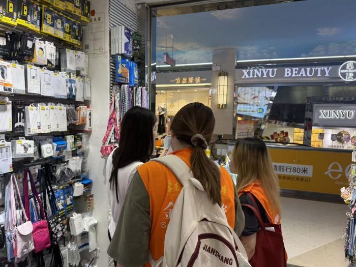 老商圈的綠色金融初體驗隨著調研深入,隊員們來到沙園街道江南新地商業街。這條建成于2003年的地下商業街,為調研提供了豐富樣本。七月的廣州驕陽似火,但商戶們仍熱情配合調研工作。