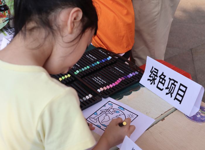 圖為小朋友用畫筆勾勒綠色未來。宋佳悅 供圖