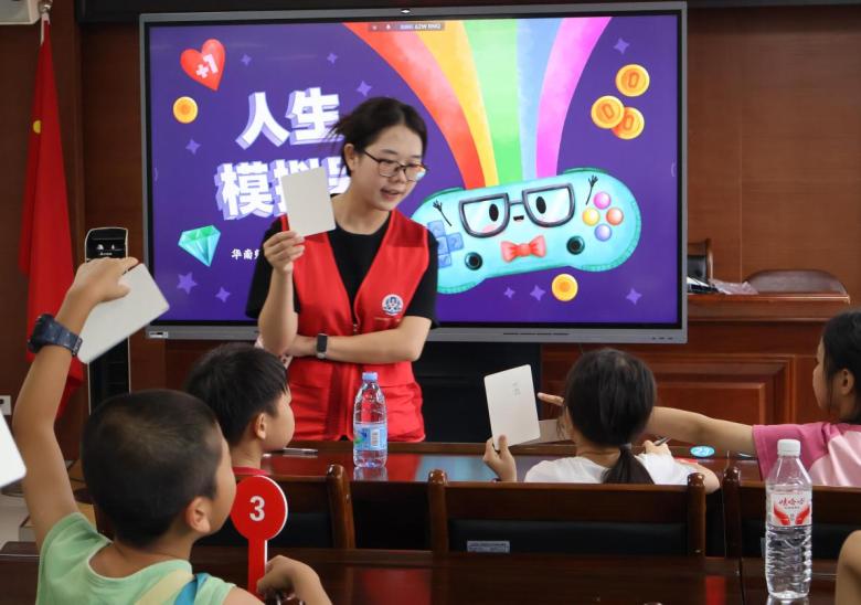 課程開始,老師通過介紹火把流動實驗室開發的人生模擬器功能測評的有趣場景吸引了小朋友們的注意。在人生拍賣會環節,孩子們充滿期待、介紹規則時躍躍欲試,課堂上充滿著他們童真的討論。拍賣正式開始后,小朋友們都踴躍的舉牌,每一件“商品”都有人追逐,他們經過精彩激烈的競拍都如愿拿下了心儀的商品。拍賣過程中,火把流動的成員們也在旁細心的記錄孩子們的剩余財富并解疑答惑。周芷鈞說:“我拍下了善良,因為每個人都需要善良讓世界更美好。雖然剛開始拍賣的時候因為不太清楚財富值、規則和商品有點緊張,但之后適應了就不緊張了。”