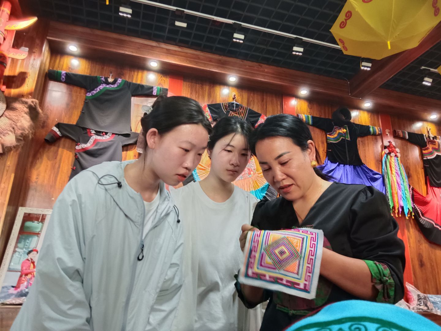 在馬邊彝族自治縣,花間刺繡工坊市級(jí)非遺傳承人曲別李英老師向團(tuán)隊(duì)介紹,彝族刺繡已成為當(dāng)?shù)刂行W(xué)的特色課程,孩子們用稚嫩的小手,一針一線繡出彝繡文化的模樣,每一針都在訴說(shuō)彝家兒女的故事,每一色都暈染著大山的靈韻。她還分享了小涼山彝繡與羌繡、蜀繡等交融共生的發(fā)展歷程,也談及傳承中遇到問(wèn)題與未來(lái)可探索的方向,這些分享為團(tuán)隊(duì)調(diào)研指明了清晰路徑,讓隊(duì)員們對(duì)小涼山彝繡傳承有了更深刻的體悟。