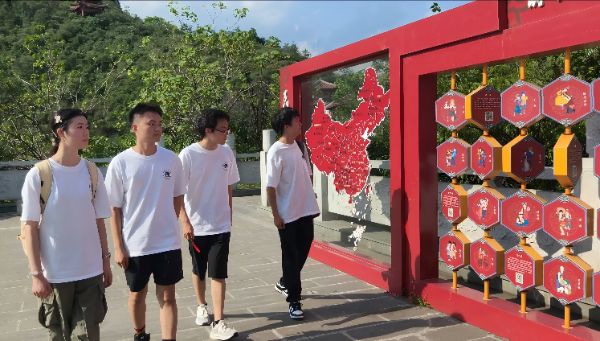 告別文化館后,實踐團沿山路登上背峰山。山巔廣場的“云之門”旁,巍峨的民族團結故事墻靜靜矗立,墻上“民族團結之窗”區(qū)域陳列著五十六個民族的圖文展板,藏族經(jīng)幡、蒙古族馬頭琴、傣族孔雀舞等各民族文化歷史元素在展板上清晰呈現(xiàn)。程宏偉老師帶領實踐團成員駐足觀看,同步講解民族文化知識及黨關于筑牢民族團結的精神,引導大家深刻領會“中華民族一家親”的理念,為實踐團隊開展后續(xù)工作筑牢了思想根基。