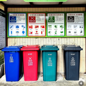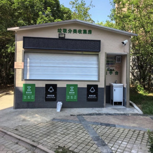 我走訪的社區城市為江蘇昆山,地點選擇為江南境秀,自垃圾分類開展以來,江南境秀以高起點、高標準追求生活垃圾分類工作高質量發展,得到居民的支持和肯定并形成了濃厚的氛圍,小區內垃圾分類形成了“新時尚”。小區內共設3個垃圾分類亭和一個垃圾分類房。垃圾分類亭、房內設有風扇、滅蚊燈、排風扇、滅火器、攝像頭、地磅、洗手池,垃圾分類房內還設有一臺高壓沖洗槍,集中清洗垃圾桶。