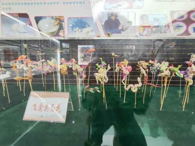 團隊首先來到陜西省商洛市山陽縣的文化館進行調研,采訪了面花傳承人楊娜女士。走進展品豐富的文化館中,楊娜女士帶領實踐團參觀了文化館里的面花展覽處,將山陽縣面花這項文化藝術娓娓道來:山陽縣面花,作為一種獨特的傳統手工藝,不僅是一種食品,更是一種藝術品。它是將小麥面粉發(fā)酵后,通過捏制成為形態(tài)各異的人物、動植物等,展現了中華民族優(yōu)秀文化傳統中的飲食文化。山陽縣因其獨特的地理位置和豐富的歷史文化遺產,吸引了大量游客,而面花藝術正是其中之一,它不僅是耐看的藝術品,更是能享用的美食。