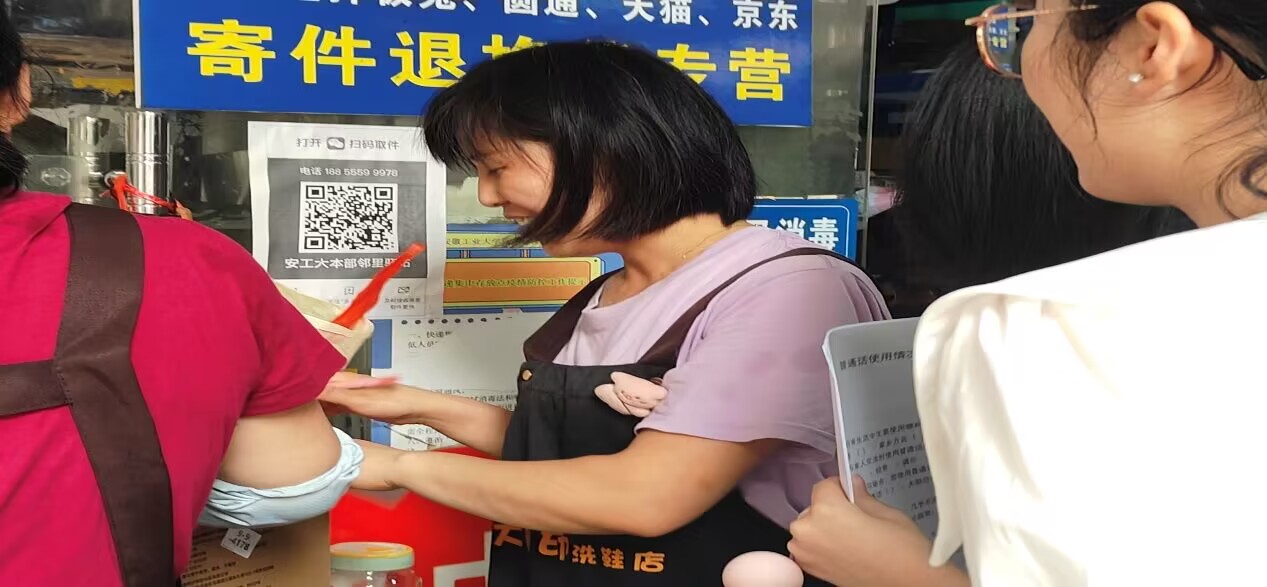 在校外,我們也調查了學校周圍的一些店鋪老板以顧客。經(jīng)過我們的調查結果顯示,大部分老板在面對學生時會說普通話。顧客之中,那些年齡偏大的會更經(jīng)常說方言。