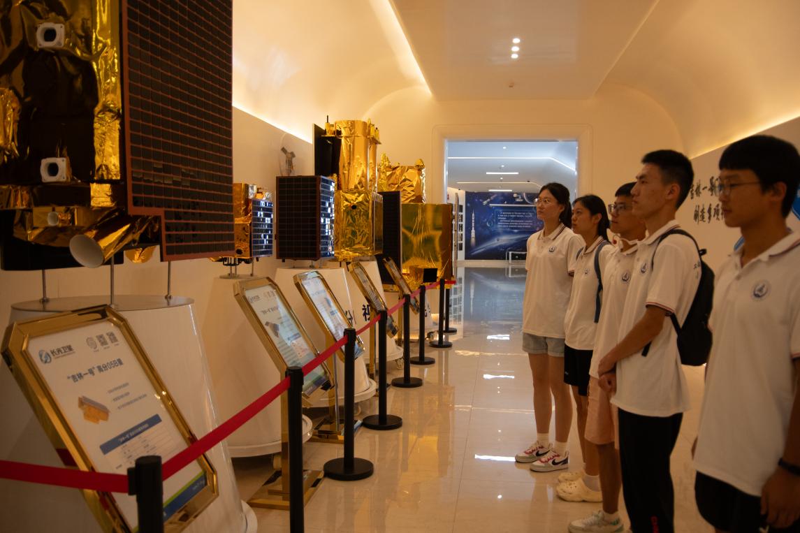 圖為實踐隊員參觀“吉林一號”衛(wèi)星模型。 楊銳 供圖