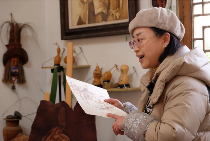 圖為李彩蘭老師為隊(duì)員們介紹烙畫(huà) 陳蜀 供圖