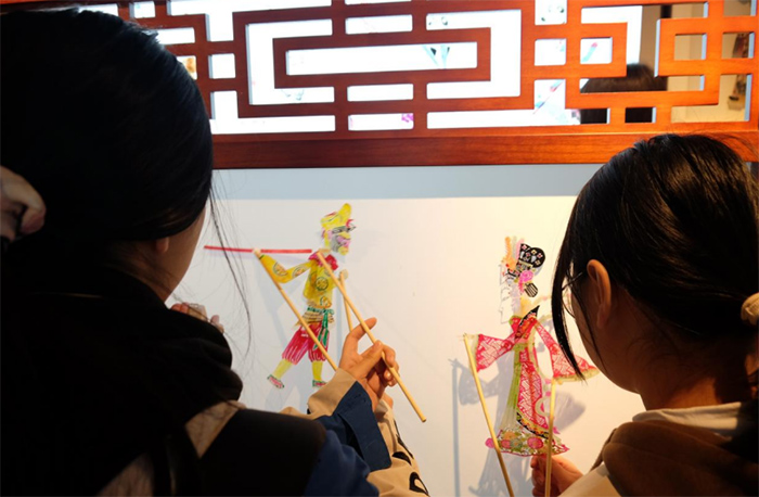 圖為隊(duì)員體驗(yàn)皮影表演 陳蜀 供圖