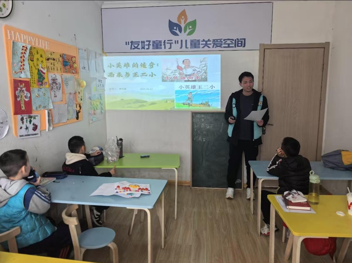 讀書分享會:精神的星火相傳午餐過后,孩子們稍作休息,便迎來了下午的活動。在黃平康老師的帶領下,孩子們認識了小英雄雨來和王二小的故事。平康老師生動地講述著,孩子們聽得入神,眼中閃爍著對英雄們的敬佩之情。隨后,李子晗老師為孩子們帶來了《駱駝祥子》的故事,講述了那個吃人的封建社會,孩子們聽得津津有味。通過這個故事,子晗老師希望孩子們能夠更加深刻地認識到社會的進步與發展,珍惜當下美好的時代。