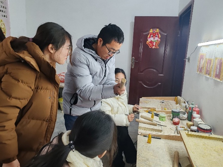 圖為實(shí)踐隊(duì)成員傾聽學(xué)習(xí)王亞楠老師對石猴制作的歷史和工藝。吉祥 馬緣 供圖
