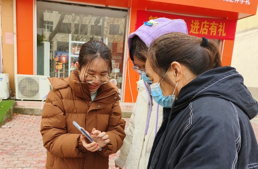 圖為實(shí)踐隊(duì)成員在社區(qū)走訪對民眾宣傳方城石猴非遺文化。吉祥 馬緣 供圖
