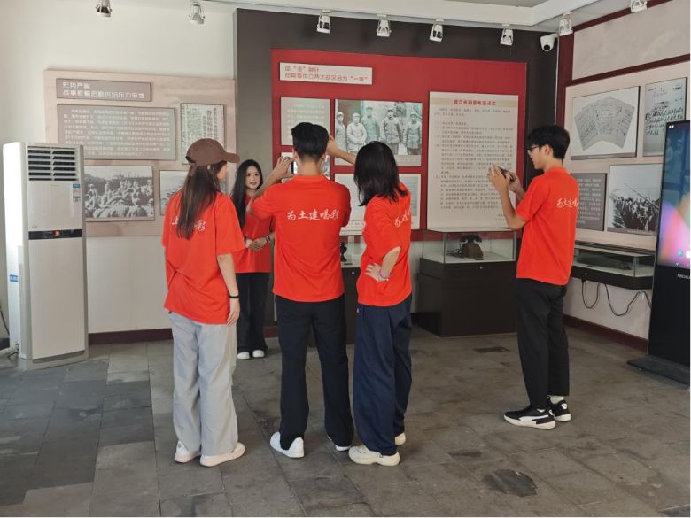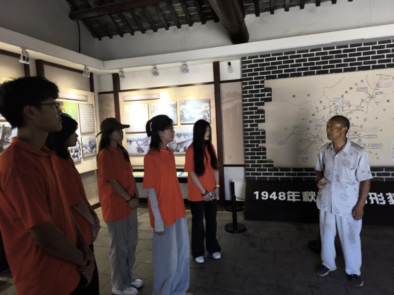 7月5日上午,團隊成員懷著崇敬與期待的心情,抵達淮海戰役總前委舊址——文昌宮,這里承載著厚重的歷史記憶和偉大的革命精神。團隊成員首先自行進行參觀學習,他們漫步在舊址的各個角落,認真端詳著每一件陳列的文物、每一幅珍貴的歷史照片,試圖從這些歷史的“碎片”中拼湊出淮海戰役的全貌。老式的桌椅、陳舊的軍裝、銹跡斑斑的武器……這些看似普通的物品,卻無聲地訴說著當年那場艱苦卓絕的戰役,仿佛將成員們帶回了戰火紛飛的年代。團隊成員不時駐足停留,仔細閱讀墻上的文字介紹,相互交流著自己的感悟與體會,在心中默默向革命先烈們致敬。