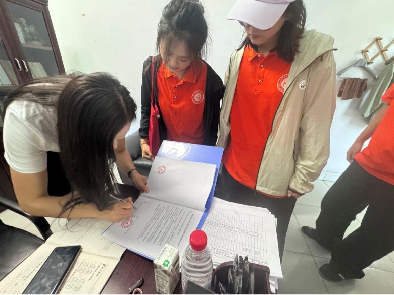 圖為團隊成員與王莉書記簽訂基地協議。杜運豐供圖