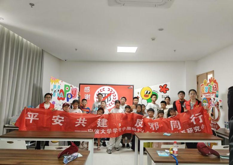 2025年7月8日,寧波大學學生中國特色社會主義理論體系研究會反邪教暑期實踐小隊前往寧波市鎮海區臨江社區開展了題為“平安共建反邪同行”的宣講活動。本次宣講活動通過向小朋友們傳播反邪教知識,引導社區兒童識別邪教和提升抵制邪教的能力,傳播社會主義核心價值觀,為未成年人身心健康成長保駕護航。