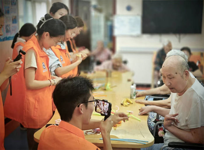 走進老人房間,隊員們像久別重逢的親人,圍坐在老人身邊。聽99歲的奶奶講年輕時生育孩子的艱辛,幫老爺爺回憶年少時的意氣風發(fā),那些被歲月沉淀的過往,在交流中重新煥發(fā)光彩。老人臉上的笑容,成了隊員們最珍貴的收獲。
