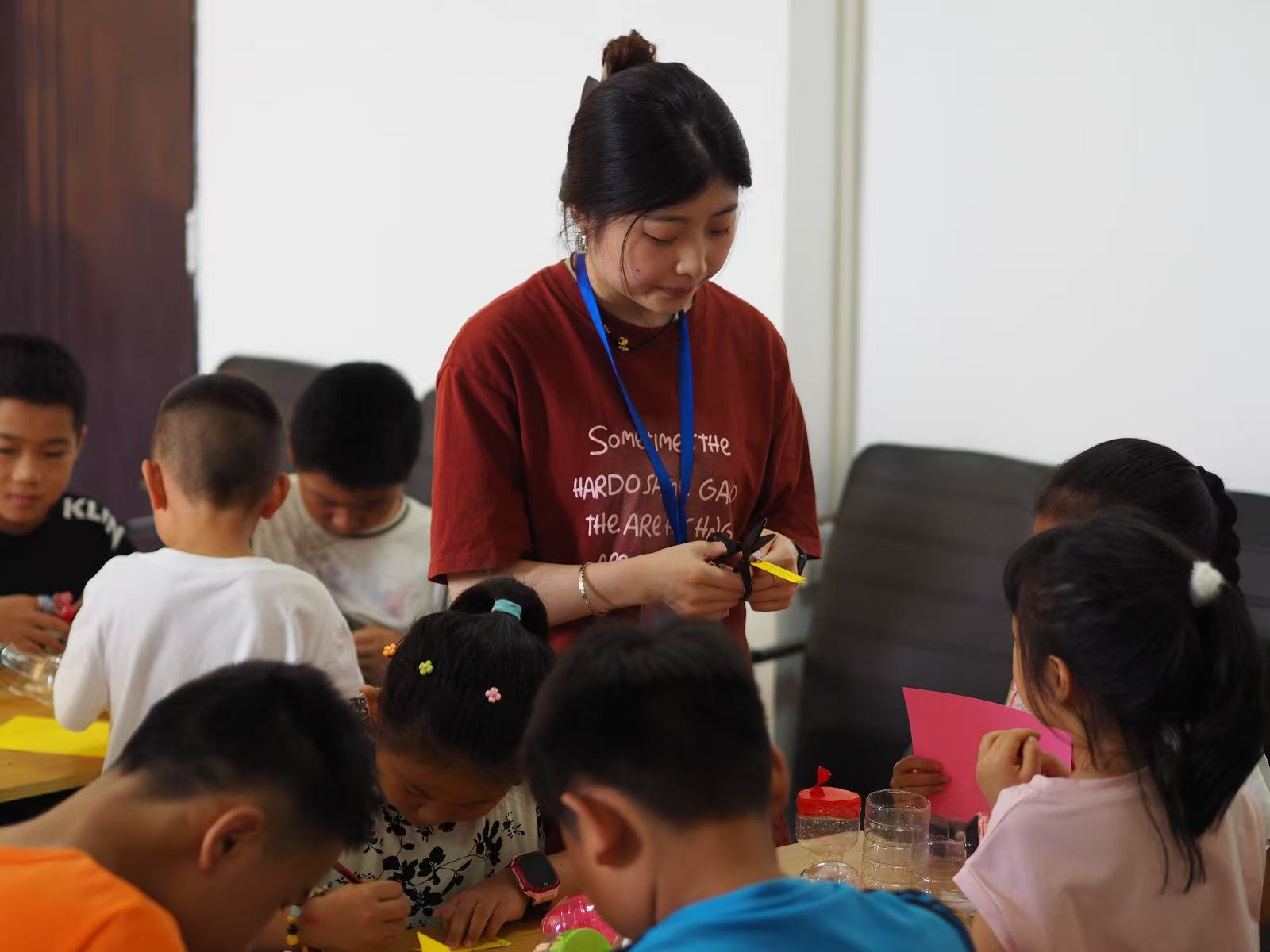 (圖為實踐隊員指導(dǎo)孩子動手操作。劉晶晶 供圖)