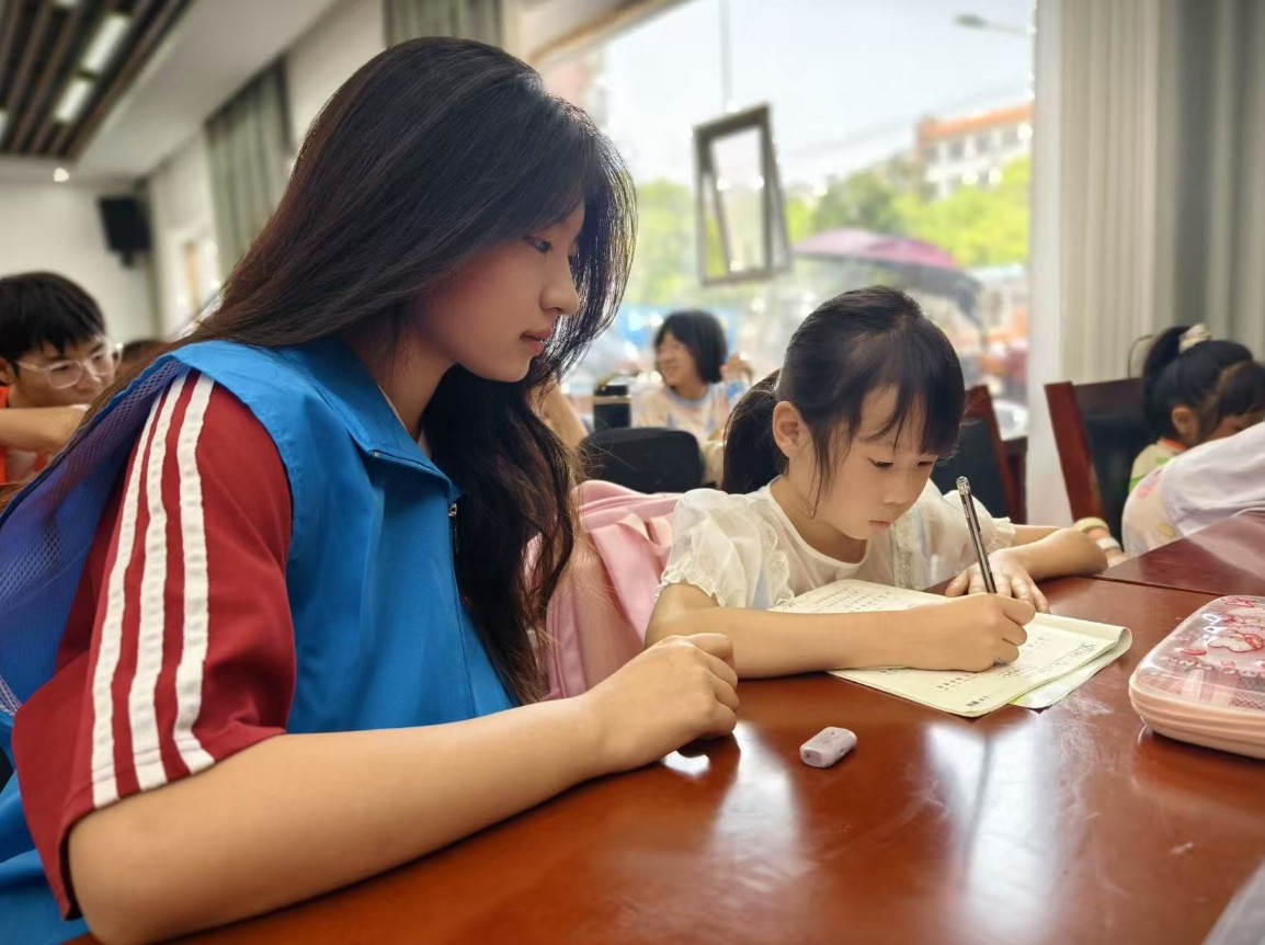 合影結束后,實踐隊成員還為社區的孩子們提供了作業輔導服務。他們耐心解答孩子們在學習中遇到的問題,幫助他們鞏固知識,提高學習效率。這一環節不僅幫助孩子們解決了學習上的難題,也讓他們感受到了來自大學生哥哥姐姐們的關懷和鼓勵。