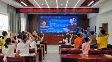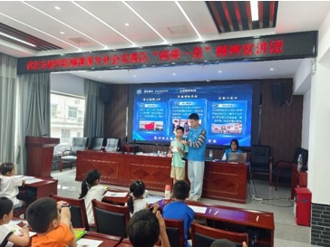 7月9日9:00,武漢東湖學院橘徠服兮社會實踐隊“兩彈一星”精神宣講團成員們抵達橘頌社區,為社區托管班學生講解 “兩彈一星”精神科普課。