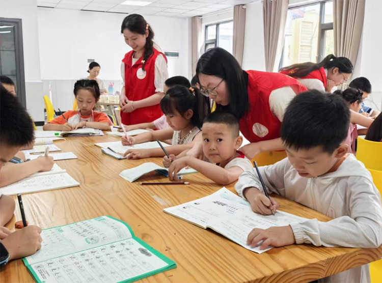 讀書活動結束后,緊接著開展了課后作業輔導。孩子們紛紛拿出暑假作業,圍坐在桌前,遇到難題時便舉手向志愿者請教。無論是數學題里的邏輯運算,還是語文中的詞句辨析,志愿者們都耐心細致地一一解答,他們用通俗易懂的語言拆解復雜知識點,還會舉一反三地舉例講解,引導孩子們獨立思考。遇到注意力不集中的孩子,志愿者會輕聲提醒,用鼓勵的話語調動他們的積極性。在輕松的互動中,孩子們不僅解決了作業中的困惑,還逐漸掌握了更高效的學習方法,臉上露出了豁然開朗的笑容。