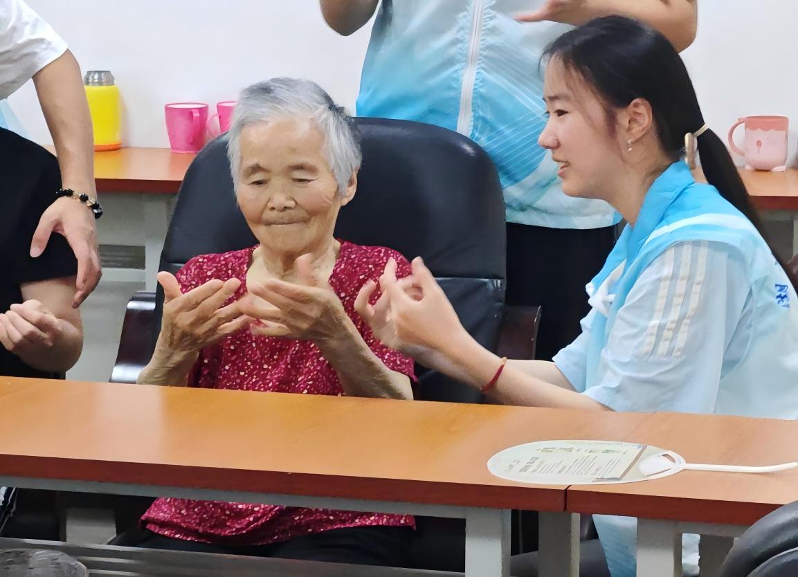 "來,跟著我—"志愿者小楊坐在老人旁邊,帶著老人們做手指操。她的聲音軟軟的,像哄孩子似的:"劉奶奶,您的手指再張開點,像拈著花瓣呢。"85歲的劉奶奶患關節炎,手指總蜷著,小楊蹲下來,輕輕把她的手指一根根掰開、伸展。"哎,不麻了!"劉奶奶驚喜地動了動手指,像發現了新玩具的孩子。
