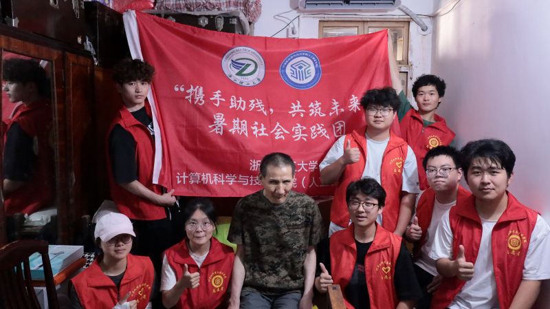 7月6日下午,浙江理工大學計算機科學與技術學院(人工智能學院)"攜手助殘,共筑未來"暑期社會實踐團聯合手語社前往上城區視障老人湯叔叔家中,開展慰問與采訪活動。這段溫暖的緣分始于16年前,自2009年起,手語社的同學們就與湯叔叔建立了長期聯系。